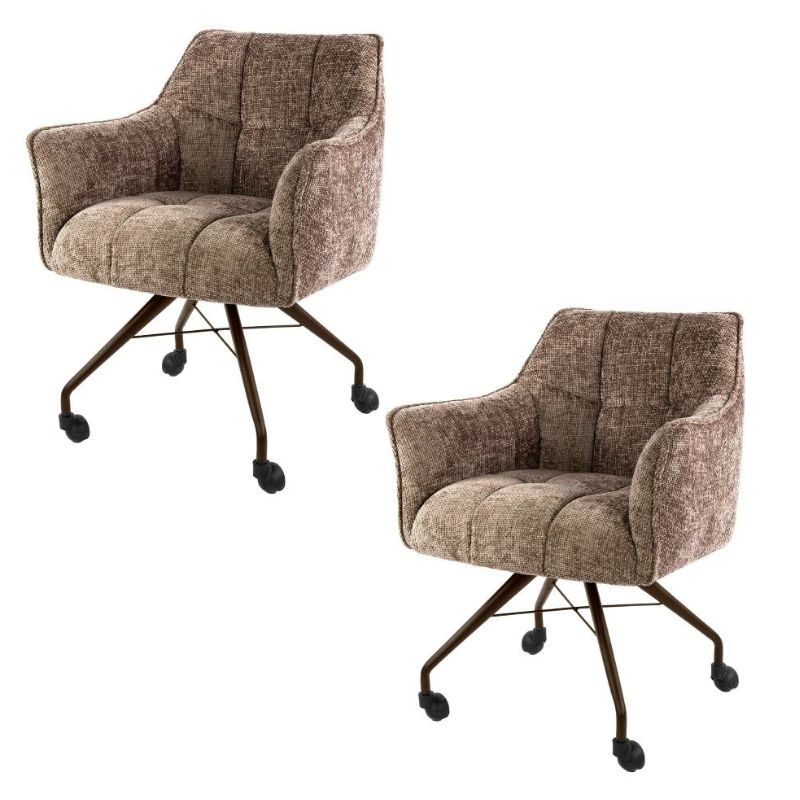 Podnieś standard swojej jadalni lub domowego biura dzięki krzesłu Raster na kółkach. Ten wyjątkowy mebel od Mooi Living to idealne połączenie luksusowego komfortu siedzenia z nowoczesną funkcjonalnością. Wykonane z wysokiej jakości melanżowej tkaniny w ciepłym odcieniu brązu. Krzesło Raster wprowadza do wnętrza przytulność i ponadczasową elegancję.