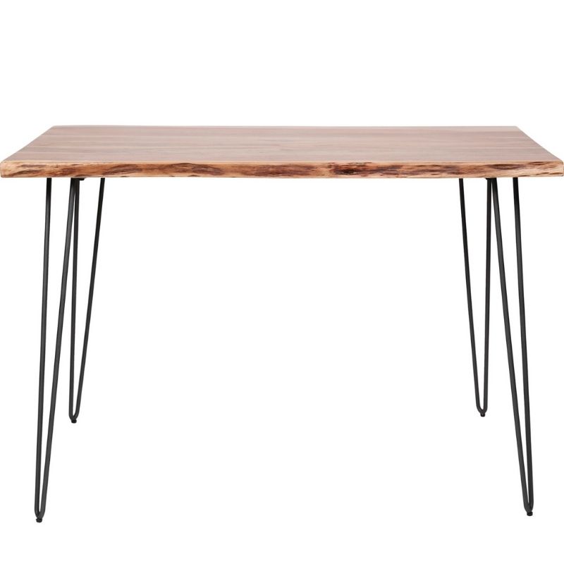 Ten stół barowy ma 130 cm szerokości i naturalny kształt pnia, który jest wykonany w tradycyjny sposób. Blat stołu jest zabezpieczony przezroczystym olejem, co zapewnia ochronę przed wilgocią i brudem. Stół barowy posiada stelaż malowany proszkowo na czarno. Połączenie blatu i stelaża nadaje stolikowi barowemu modnego i nowoczesnego stylu.
