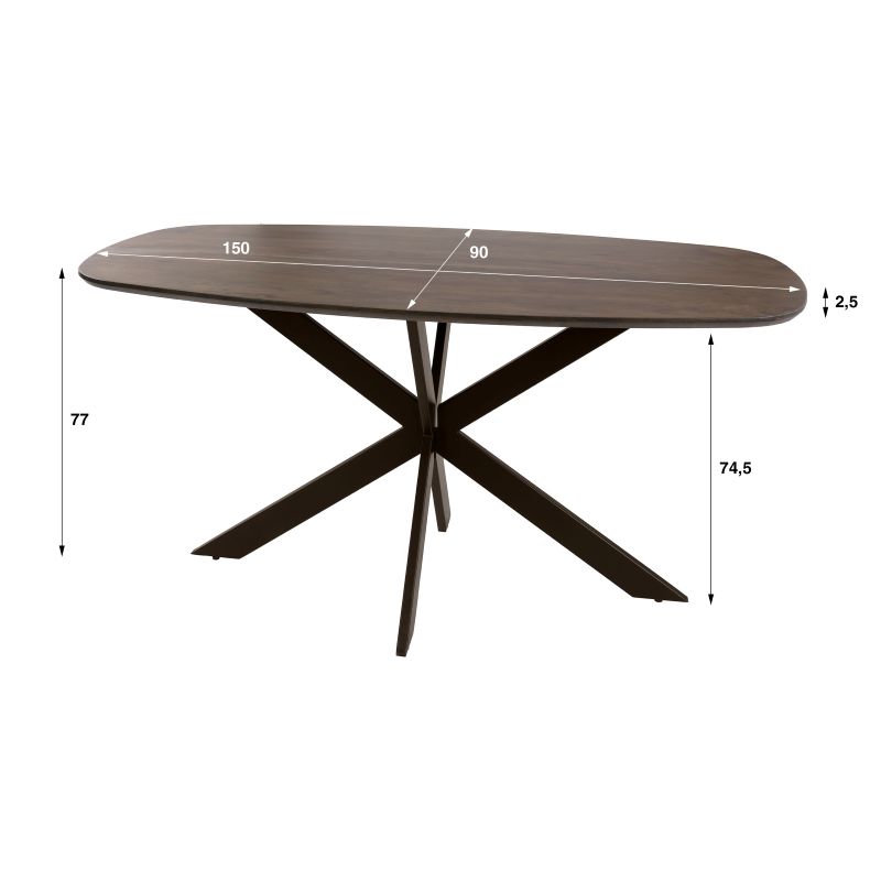Ten piękny stół jadalny Arhus 150 cm wykonany jest z litego drewna akacjowego wykończony matowym lakierem w ciepłym odcieniu brązu. Wybrano duński blat owalny z ramą w kształcie pająka. Stół dostępny jest w długości 150 cm, a także w długościach 180 cm i 215 cm.