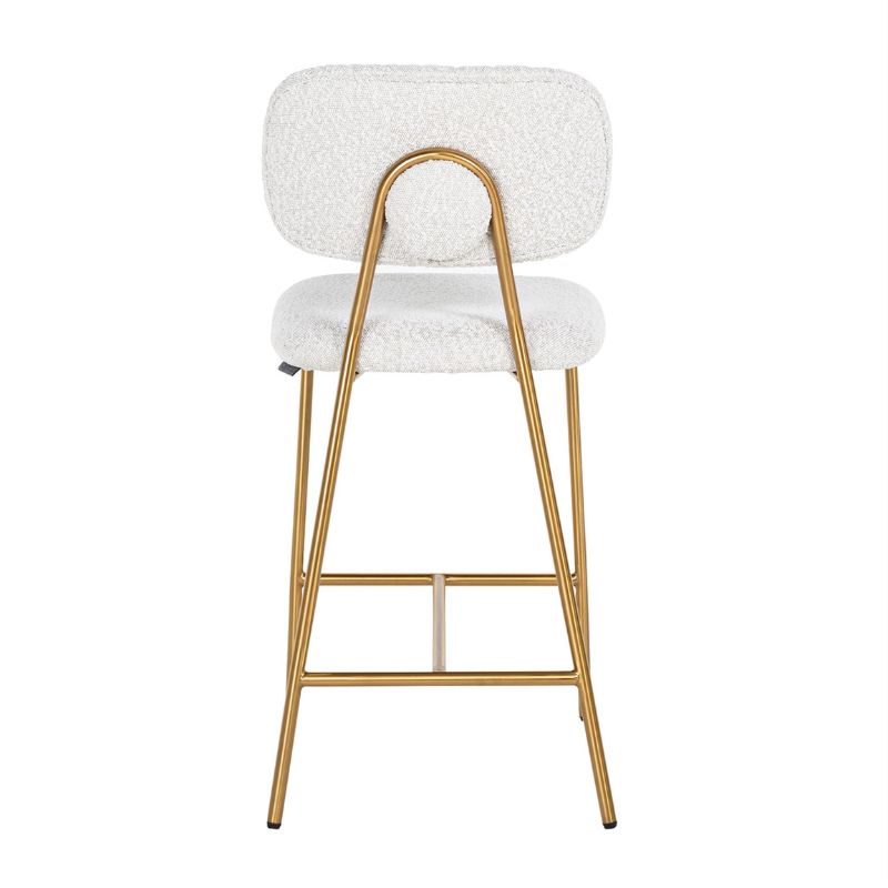 Elegancki, biały hoker na smukłych złotych nogach wpasuje się w wiele pięknych wnętrz. Wysokiej jakości tkanina Boucle jest odporna na plamy, natomiast podstawę stanowią nogi wykonane ze stali szczotkowanej w kolorze złota. Wygodne siedzisko i miękkie oparcie zapewni komfort użytkowania. Seria hokerów Xenia dostępna jest w różnych kolorach. Dostępne są dwie wysokości siedziska: 79 oraz 65 cm.