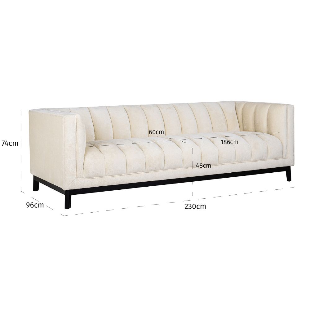 Nowoczesna, komfortowa sofa Beaudy o wymiarach 230 x 96 x 74 cm. Sofa wpisuje się w najnowsze trendy. Jest w kremowym odcieniu i pięknej, wysokiej jakości tkaninie Bergen 900 white chenille.