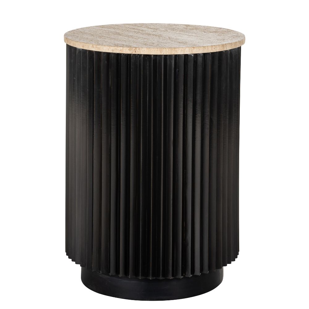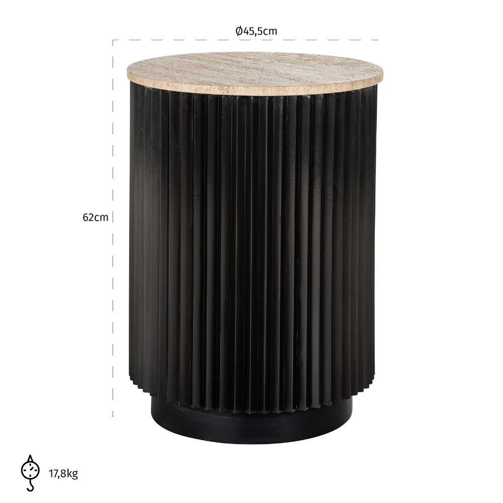 Ekskluzywny stolik kawowy Hampton to wytworny i elegancki mebel, który nada każdemu wnętrzu elegancji. Stolik został wykonany z wysokiej jakości materiałów z należytą precyzją. Blat stolika został zrobiony z trawertynu i ma 45 cm średnicy, natomiast podstawa z MDF i metalu. Stolik doskonale wkomponuje się we wnętrzu w stylu zarówno klasycznym, glamour, art deco.