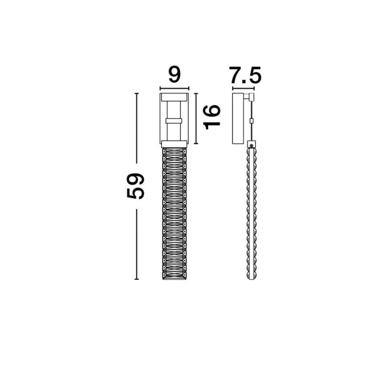 - Design i materiały: Kinkiet łączy matowe złote aluminium i stal z olśniewającym, wysokiej jakości kryształem K9. Całość uzupełnia wstawka z czarnej skóry, która tworzy wyrafinowany kontrast i dodaje tekstury.