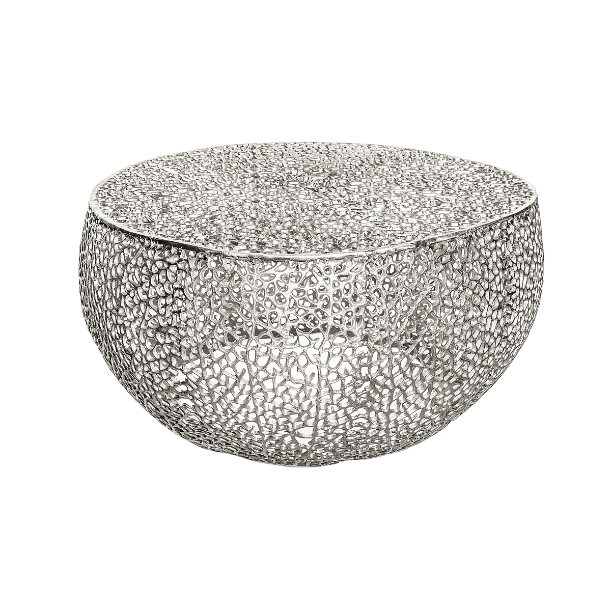 Oryginalny, srebrny stolik kawowy Leaf to funkcjonalny i przepiękny mebel. Filigranowy wzór liści układany jest indywidualnie na każdym stole.